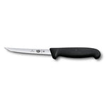 Victorinox Fibrox boning knife with a narrow, 9 cm long blade and a black non-slip ergonomic plastic handle.