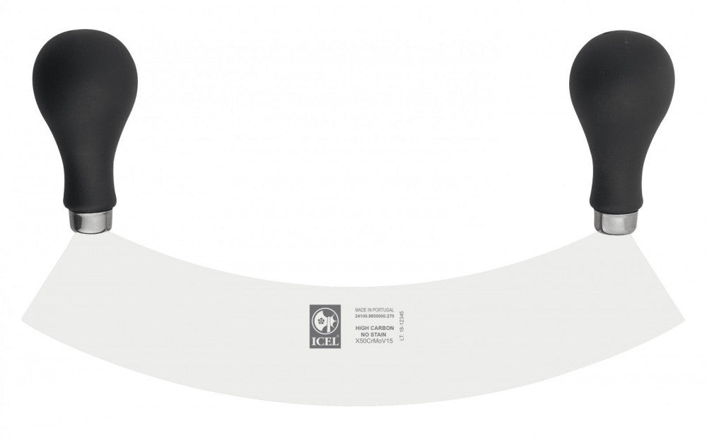 Icel Pratica Two-Handed Vegetable Chopper Curved Knife with 27 cm long blade, black handle.