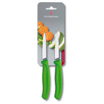 Victorinox Swiss Classic Vegetable Knife with 8 cm long blade and green handle. 2 pcs in blister packaging.