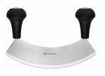 Professional curved knife, chopper knife, for easy and efficient chopping of parsley, herbs. Excellently balanced and ergonomically tested. We recommend it to people working in various areas of gastronomy, chefs, confectioners, and also an excellent tool for home use. Dishwasher safe.