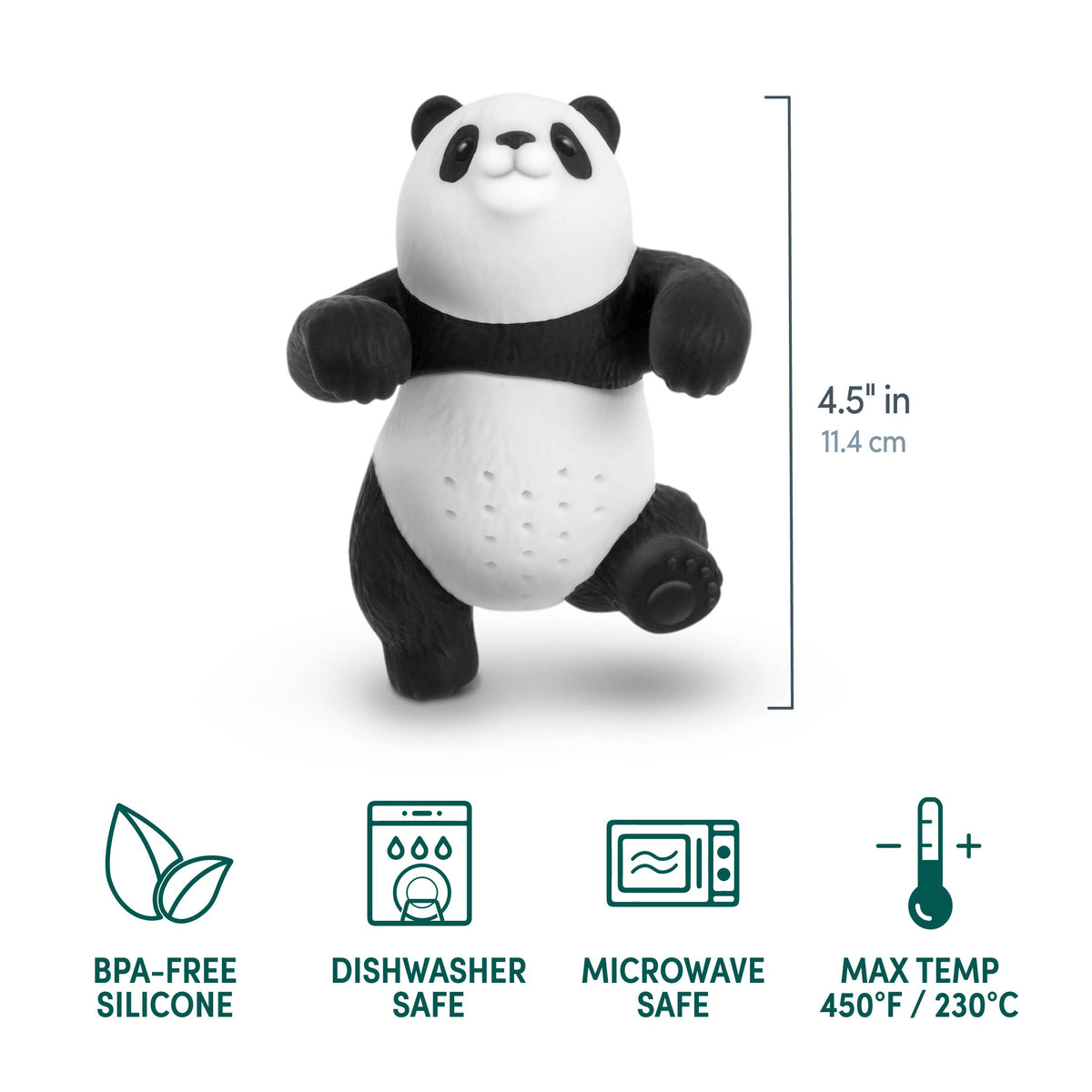 Find your zen in the panda-monium with Fred’s Bambrew tea infuser. Simply fill its charming belly with your favorite loose-leaf tea, hang it on the rim of your mug, and watch as it brews you the perfect cup. Constructed from food-grade, BPA-free silicone, it’s both microwave and dishwasher-safe. Packed in a full-color gift box.