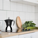 Prepare delicious, full-bodied Italian-style coffee in just minutes with the 4-cup Bialetti Moka Induction in a striking black finish. Producing approximately 150 ml of rich, highly aromatic brew, this sleek stovetop coffee maker is the perfect size for a generous single serving or for sharing a quick morning espresso with a partner.