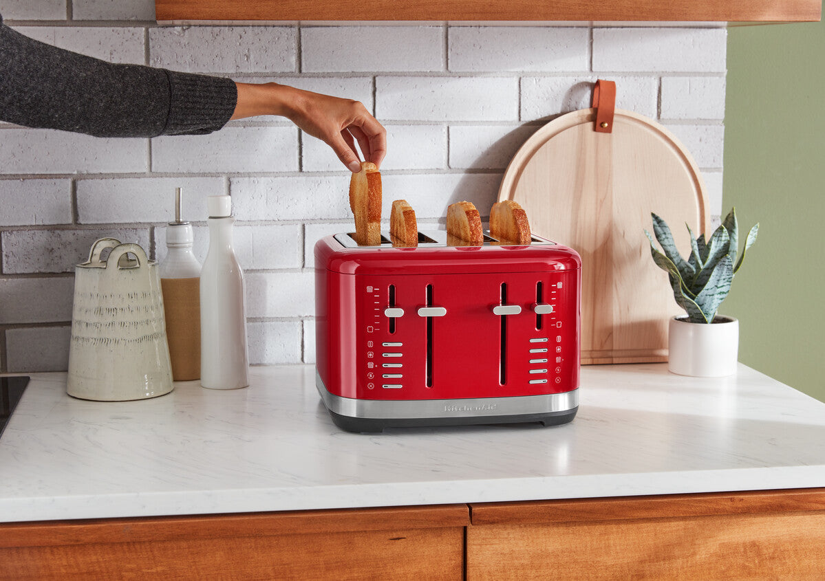 All metal design and trim adds real style. This 4-slot toaster from KitchenAid is built to last, so you can keep enjoying it for years to come. The manual high-lift lever means you can reach little bits of bread and check on progress without interrupting the toasting cycle.