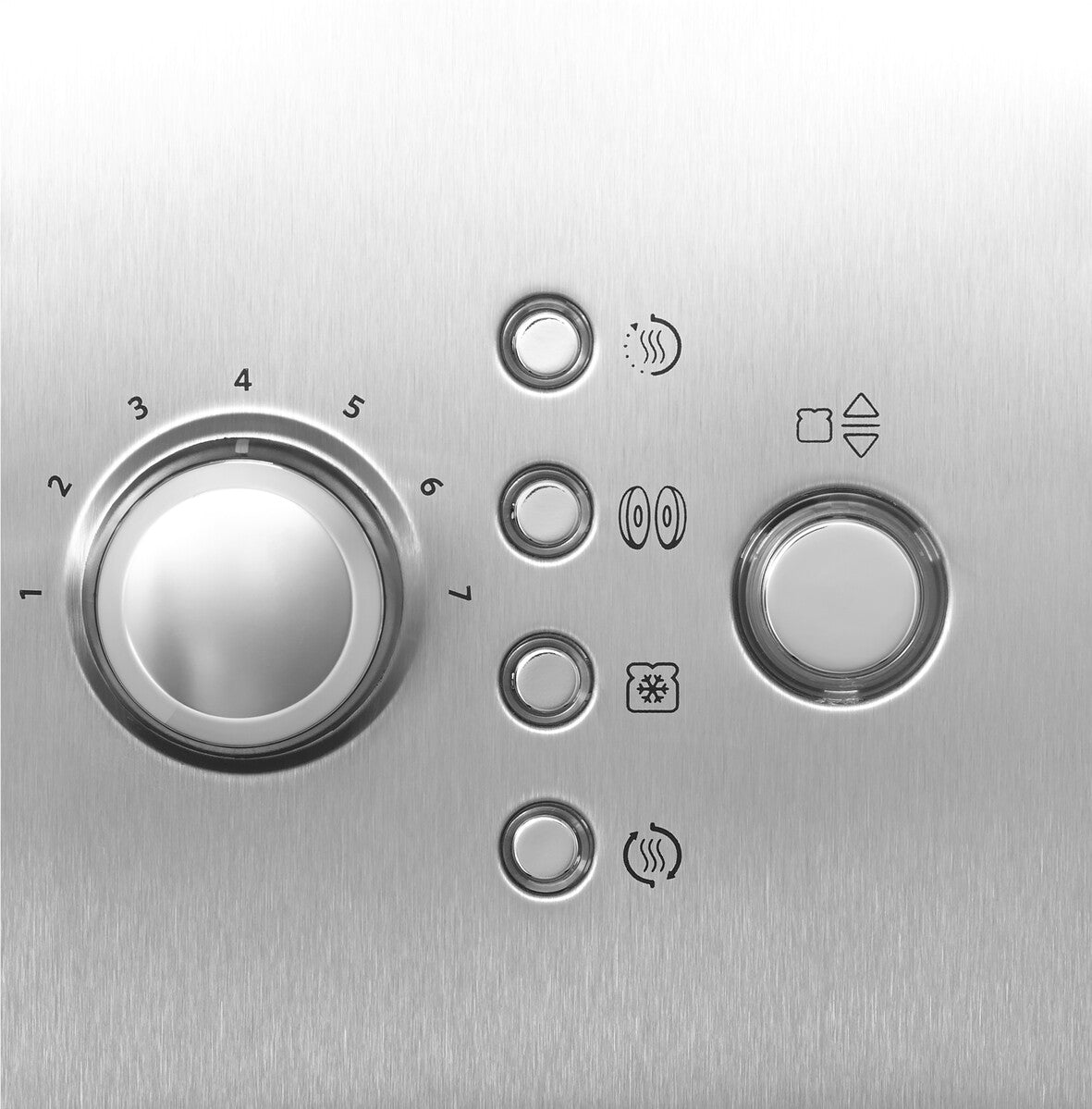 The extra-wide 3 cm slots means you can throw in all shapes and sizes, from sourdough to hand-cut farmhouse. Just load up with tasty toppings, like avocado and poached eggs, brie and bacon or just good old jam. The automatic self-centring rack in each slot makes sure your bread is toasted evenly, with no annoying burnt bits sending up smoke.