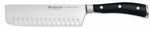 Wüsthof 4187D – Classic Ikon Nakiri Japanese chef's knife with a ribbed 17 cm blade and black handle.
